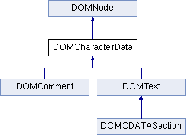 The DOMCharacterData interface extends DOMNode with a set of attributes and methods for accessing character data in the DOM.