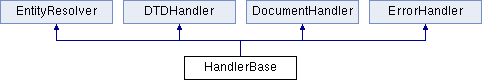 This class implements the default behaviour for four SAX interfaces: EntityResolver, DTDHandler, DocumentHandler, and ErrorHandler.